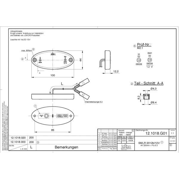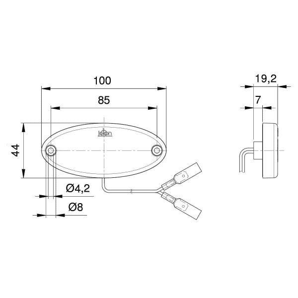 Bočné obrysové LED svetlo Jokon SMLR 2012 s integrovanou odrazkou. Dĺžka kabla 200 mm s plochými konektormi.