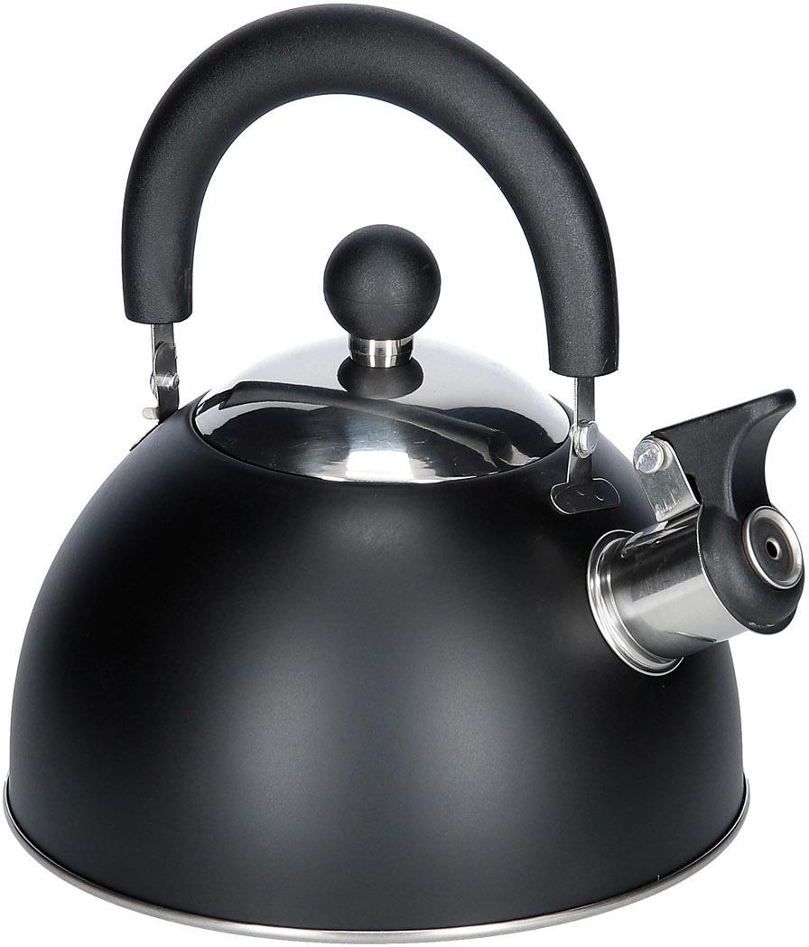 Čajník z nehrdzavejúcej ocele, s píšťaľkou a izolovanou rukoväťou. Objem 1,8 l. Farba: matná čierna.