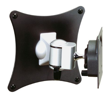 Štýlový držiak s nosnosťou do 8 kg. Predná časť obsahuje guľový kĺb, ktorý umožňuje voľne otáčať plochú obrazovku. Dodávka obsahuje 1 prídržnú dosku pre Vesa 75 a Vesa 100, ktorá sa jednoducho nasadí na držiak a zaistí sa krídlovou maticou. Displeje sa tak dajú ľahko odstrániť a uložiť, keď sa nepoužívajú.