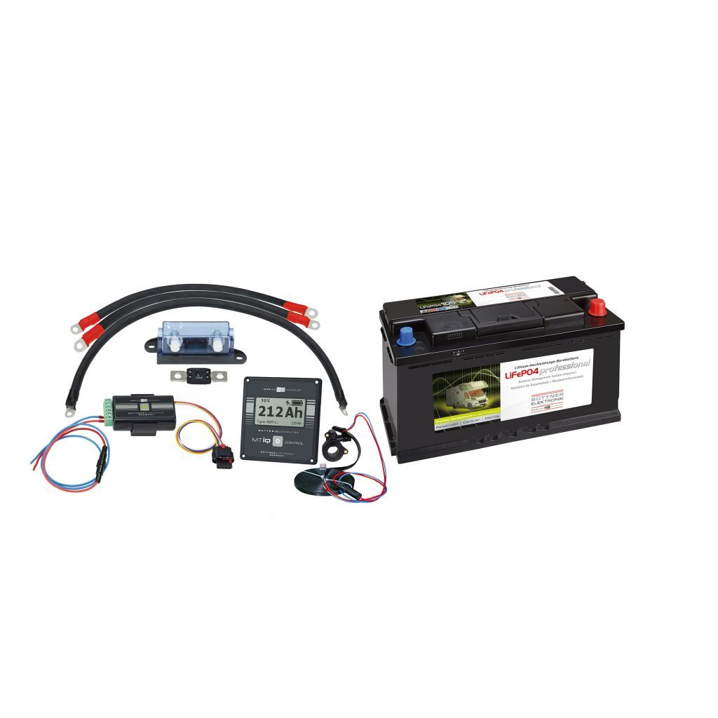 Rozsah dodávky: inštalačná sada s batériou LifePO4, počítač na ovládanie batérie, sada inštalačných káblov vrátane poistky vysokého prúdu.