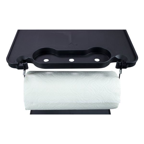 Praktické bočné stolíky: Štyri postranné plochy ponúkajú držiaky na poháre, háčiky na kuchynské náčinie a miesto na odpadkové vrecia – všetko na dosah ruky.