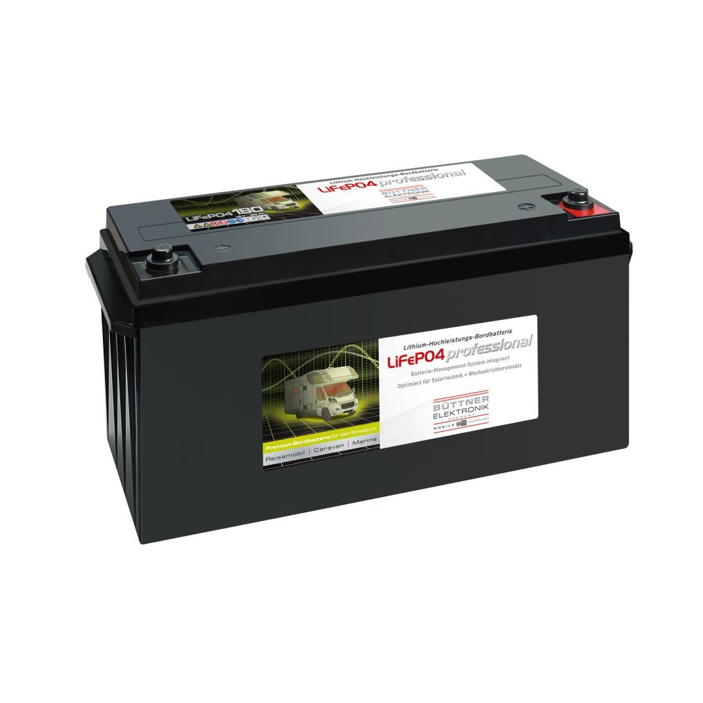 Batérie vozidla LiFePO4 od spoločnosti Büttner Elektronik sa vyznačujú vysokou skladovacou kapacitou, nízkou hmotnosťou a vysokou stabilitou cyklu. Vďaka inteligentnému systému správy batérií (BMS) sú batérie interne monitorované. Použitie meničov je ľahko možné aj pri vyššom výkone. Dokonca aj najmenšiu verziu môžete použiť s meničom (napr. MT 1200SI / SI-N) na napájanie kávovaru Nespresso alebo sušiča na vlasy až do 1200 W. Od MT Li 95 ďalej môžete používať meniče až do 1700 W Obidve batérie s kapacitou 110 Ah a 180 Ah sa dajú ľahko používať so zariadeniami (sušiče vlasov, vysávače, kávovary atď.), Ktoré potrebujú až 2000 W.