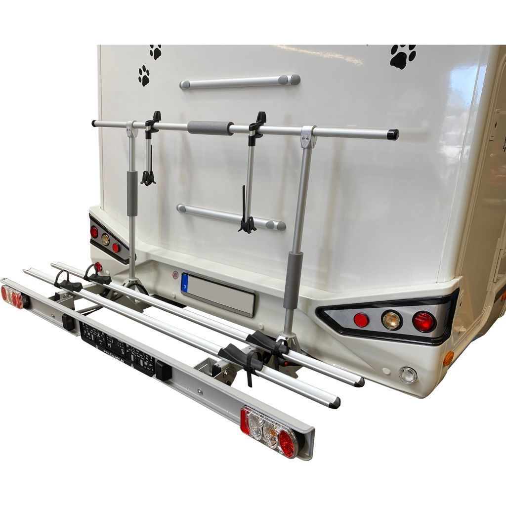 Skladací nosič s koľajnicovým systémom a konzolou na prepravu až dvoch elektrobicyklov. Následne je možné ich ľahko dodatočne namontovať