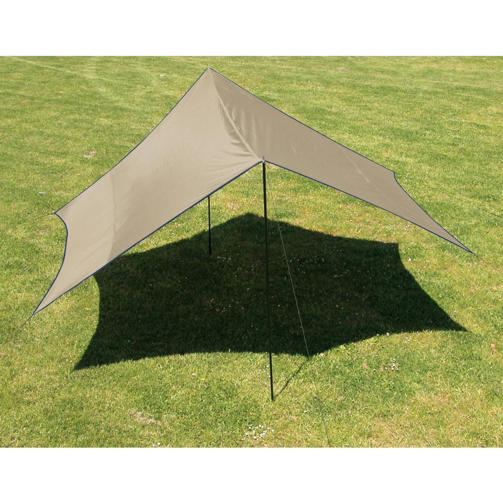 Šesťhranná plachta. Jednoduché nastavenie, ideálne pre pláž alebo do záhrady. Vr. stĺpy, laná a kolíky.