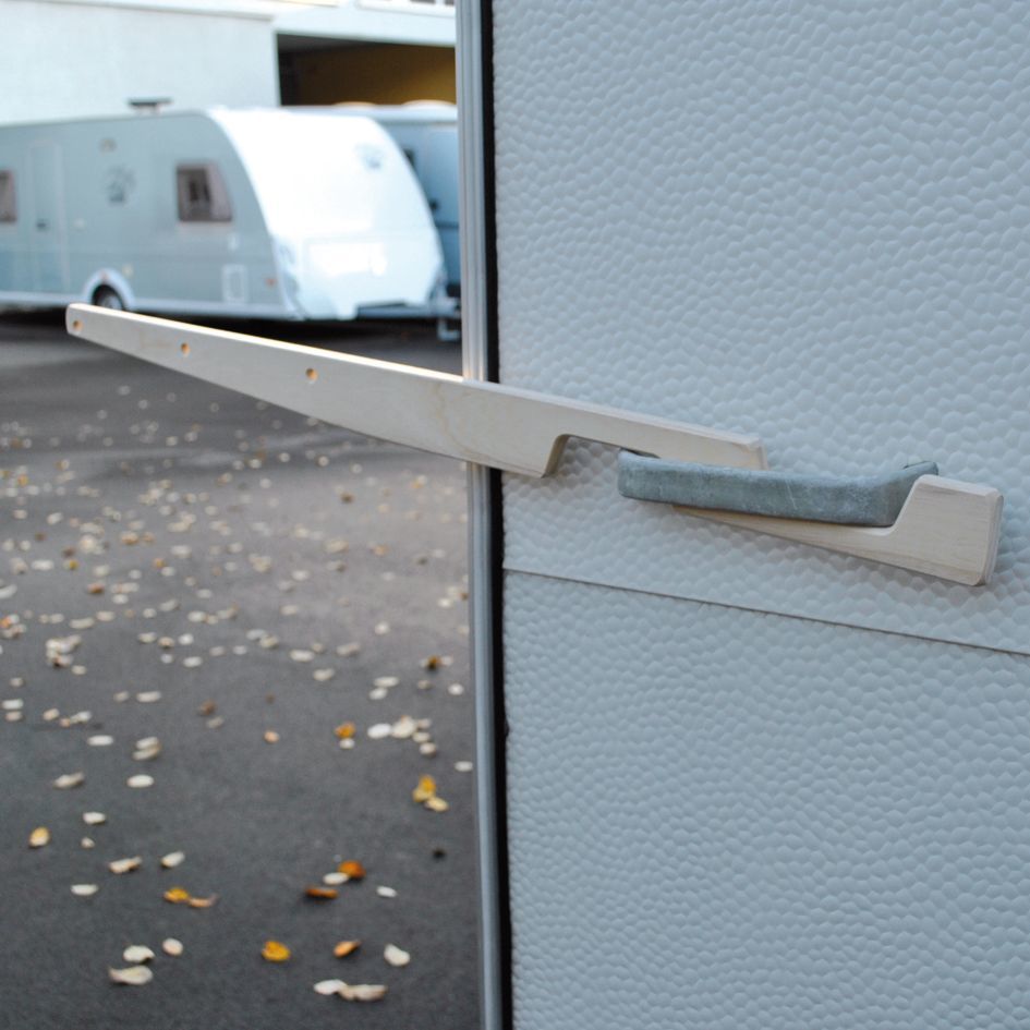 Upevňuje sa na vodorovné držadlá smerom k pozdĺžnej osi karavanu. Bielizeň visí na zadnej časti prívesu. Dodávka bez napínacej linky. Materiál: drevo.