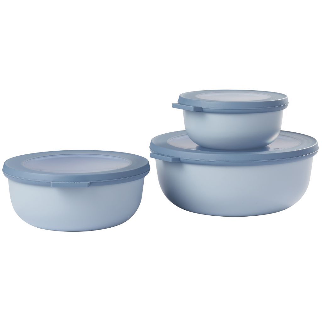 Multifunkčná miska Mepal v škandinávskej modrej farbe je dokonalým riešením pre vašu kuchyňu. Táto trojdielna súprava obsahuje ploché misky rôznych veľkostí: 350 ml, 750 ml a 1250 ml. Misky Cirqula sa môžu používať na skladovanie, zmrazovanie a ohrievanie potravín. Sú nepriepustné a dajú sa vložiť do mikrovlnnej rúry. Vďaka svojim praktickým rozmerom sú misky tiež ideálne na ukladanie zvyškov, jednotlivých porcií polievky, malých šalátov alebo detskej stravy.