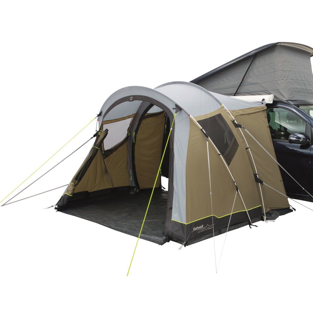 Samostatne stojaca markíza Lakecrest vyžaduje málo miesta a je veľmi kompaktná a ľahká. Vďaka dvom ľahkým hliníkovým oblúkovým stĺpikom sa markíza nastaví v niekoľkých jednoduchých krokoch. Vyvýšenú podložku, ktorá je na stenu markízy pripevnená suchým zipsom, je možné tiež úplne odstrániť. Na krátke výlety to môže ešte viac znížiť veľkosť a hmotnosť balenia. Niekoľko sieťových okien so závesmi na zips umožňuje dobré vetranie. V oblasti konektorov sú protiľahlé bočné vchody pre ľahký prístup k dodávke a markíze.