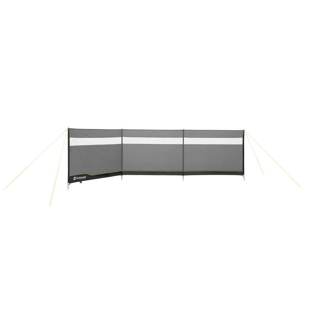 Vetrovka Outwell vás ochráni v dĺžke 5 metrov, a preto je dostatočne veľká pre celú vašu rodinu a ležadlá. Štyri časti látky sú vysoké 125 cm. Praktické panoramatické okno z PVC v hornej časti vám umožní mať vaše deti pod dohľadom. Vetrolam je upevnený pomocou robustných oceľových stĺpikov s pružinovým pripojením a je zaistený zemnými hrotmi, oceľovými kolíkmi a svietiacimi lanami.