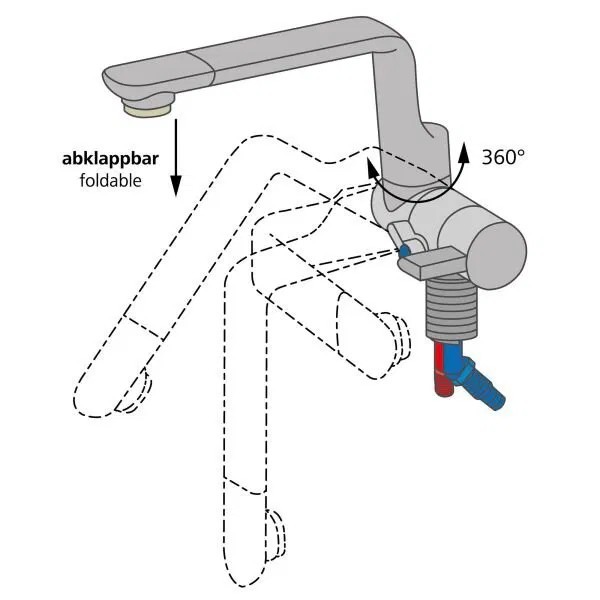 Výlevka je otočná o 360° a je skladacia, čo prispieva k úspore miesta. Súčasťou batérie je aj perlátor, ktorý sa dá pomocou dodaného kľúča rozobrať, vyčistiť a zbaviť vodného kameňa. Model je voliteľne vybavený mikrospínačom s maximálnym prúdom 3 A, čo ho robí ideálnym riešením pre inštaláciu v karavanoch a obytných vozidlách. Tento typ batérie však nie je vhodný na použitie v tlakových systémoch .