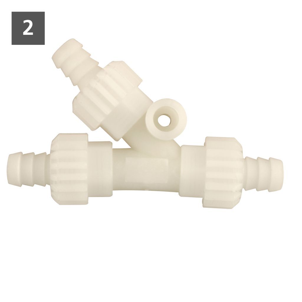 Inovatívna forma skrutkovania pre PE a PVC. Vďaka kanálu s optimalizovaným prietokom sa množstvo vodenej tekutiny zvyšuje až na štvrtinu pri rovnakom tlaku. Spojenie vydrží tlak max. 4 bar a teplota -15 ° C až 80 ° C. Vnútorný priemer ø 10 mm. Hadice z PVC, vystužiteľné tkaninou a PE trubica.